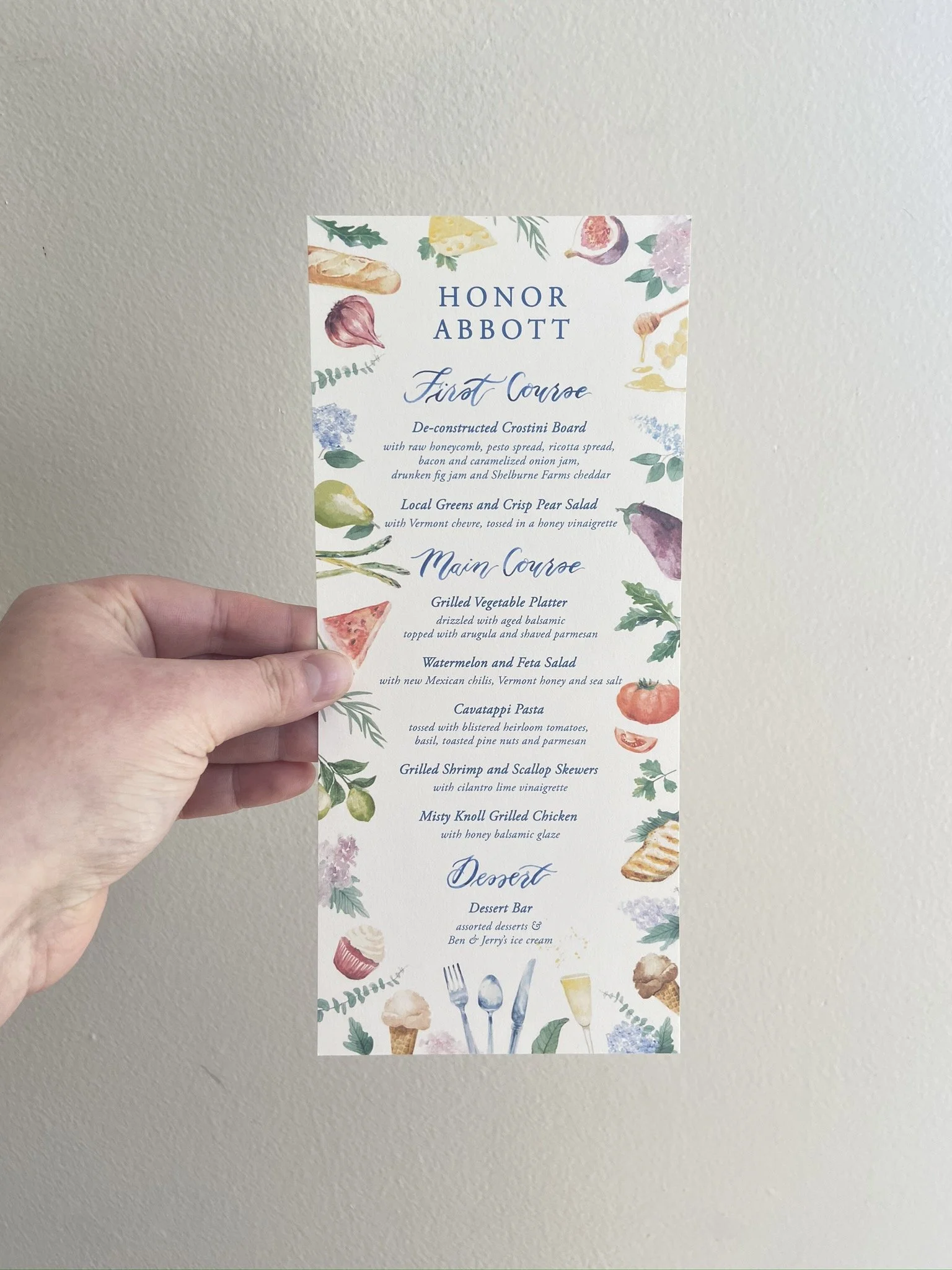 The wedding itself was full of their fun energy and personal touches, which we also highlighted with custom watercolor illustrations throughout the wedding day stationery. To read more about it and to see more of Jackie Fox’s incredible photos of the big day, visit this feature on Martha Stewart Weddings.