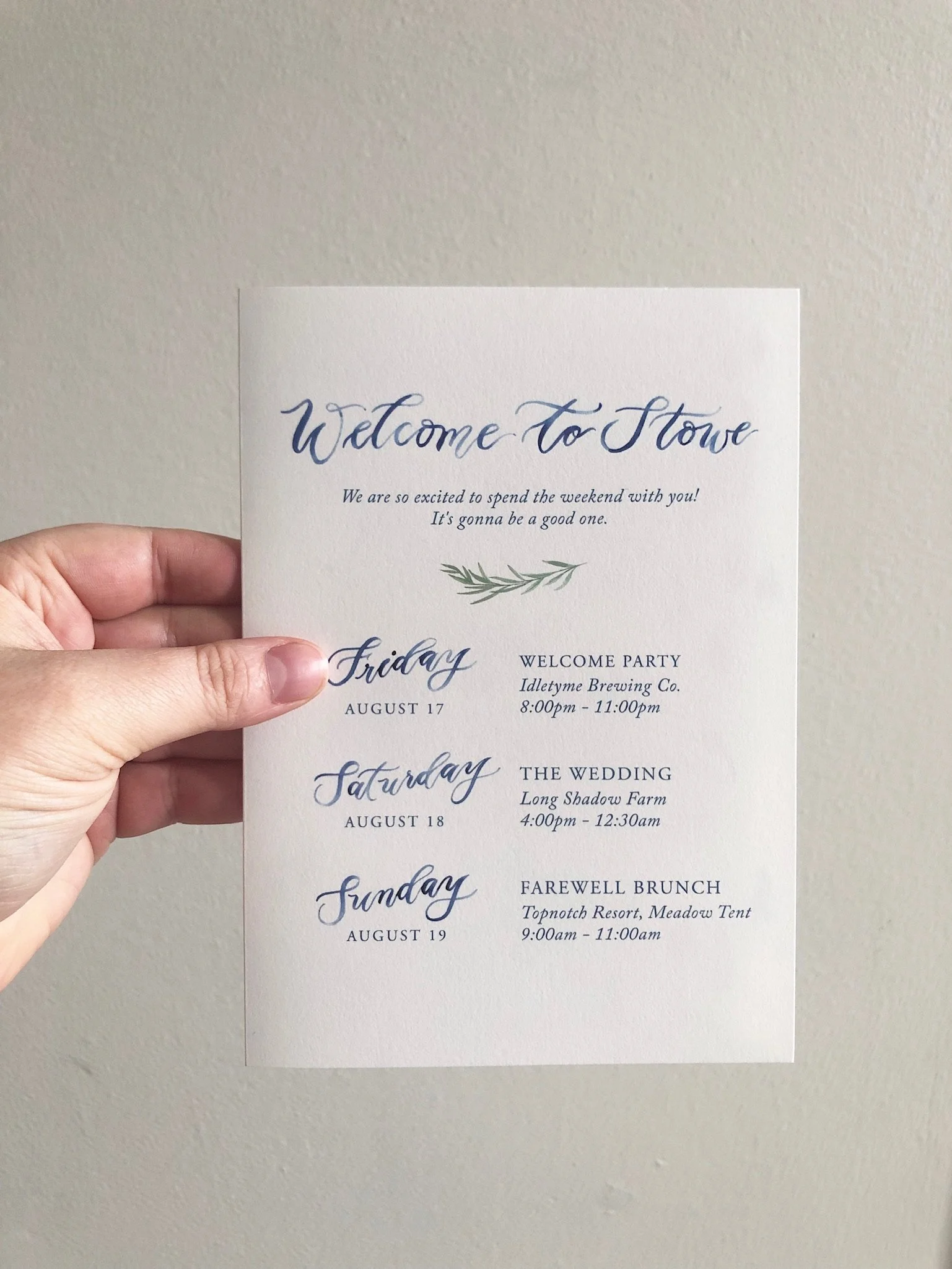 After chatting with Lauren + Josh and hearing about them from Jamie and Carrie at Storied Events, we knew that we had to create a set of wedding stationery that would showcase their warm, fun personalities. Bringing together their youthful nature, storied past and the gorgeous Vermont landscape, we created a lively and romantic wedding suite with custom artistic touches.